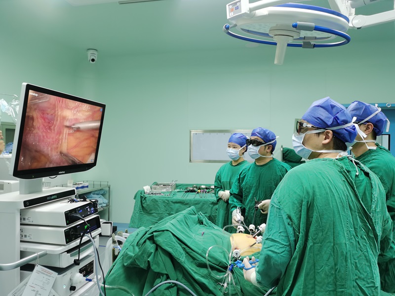 ▲福建医科大学附属第一医院胃肠外科副主任、副主任医师朱广伟在手术