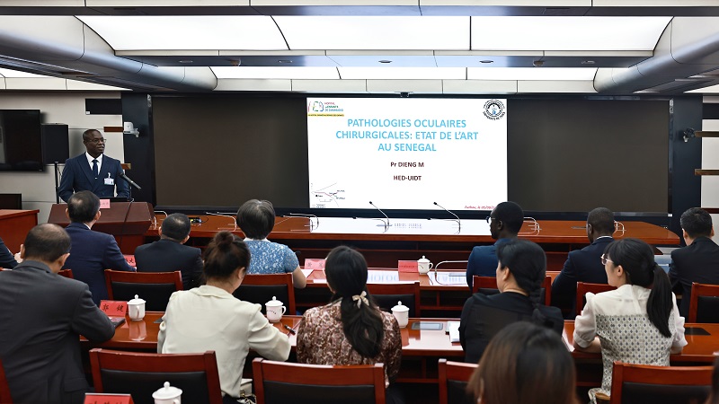 会议特别邀请正在福州大学附属省立医院交流学习的塞内加尔迪亚姆尼亚久儿童医院眼科医护人员出席,并做塞内加尔眼科工作情况交流。