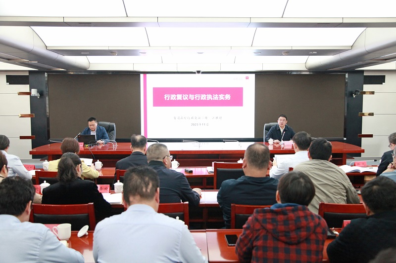 会上,江胜超从行政复议工作与复议体制改革谈起,解读了行政复议制度的功能与特征、行政复议体制改革及其影响,结合我省行政复议案件办理情况,分析了行政复议案件的办理要点,深入浅出地将法律条文和法律实务相结合,加深了与会人员对行政复议法律制度的理解和认识。