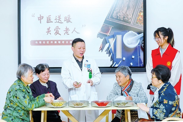 11月25日,在福建省福州市鼓楼区安泰街道居家社区养老服务照料中心,中药师、志愿者和老年人一起制作传统冬季养生药包。连日来,当地降雨降温,鼓楼区开展“中医送暖 关爱老人”主题活动,满足老年人治病和养生等需求。 中新社供图