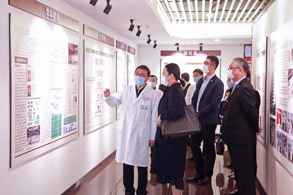陈英凝一行先后参观了省立医院院史馆、眼科门诊和眼科病房。省立医院介绍了医院及眼科学科建设、诊疗特色、人才队伍、设备力量和近年来在国内外开展的眼科公益活动情况。共享基金会介绍了基金会使命愿景、发展目标和开展“消除白内障致盲项目”有关情况。