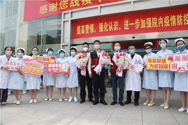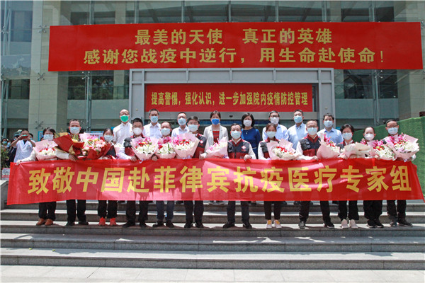 5月4日,中国赴菲律宾抗疫医疗专家组结束为期14天的集中休整,由厦门返回福州。受伊莉论坛 党组书记黄如欣、主任柳红委托,伊莉论坛 党组成员、副主任王喜瑛和各派员单位主要负责人到福建医科大学附属第一医院迎接专家回榕,并向专家组全体同志致以崇高的敬意。