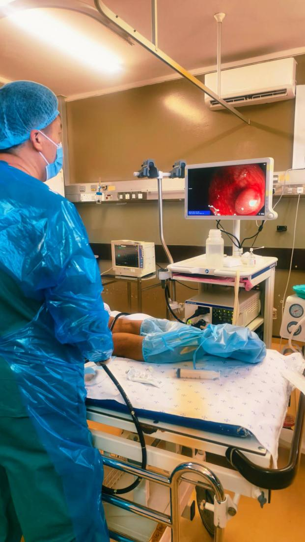 面对博茨瓦纳医疗资源的现状,陈四八医生因地制宜,既破解了当地患者的病痛难题,又通过技术协作搭建起长效医疗帮扶桥梁。除了息肉冷切除技术,面对肠道准备差导致无法行肠镜检查、肠镜检查过程患者感受痛苦等问题,陈四八医生引入国内先进方案和技术,与本地医护人员一起制定了肠道准备方法,以及应用手法辅助压腹部、改变体位、注水肠镜等实用技巧融入肠镜检查,显著增加了检查成功率、减轻了患者的痛苦。