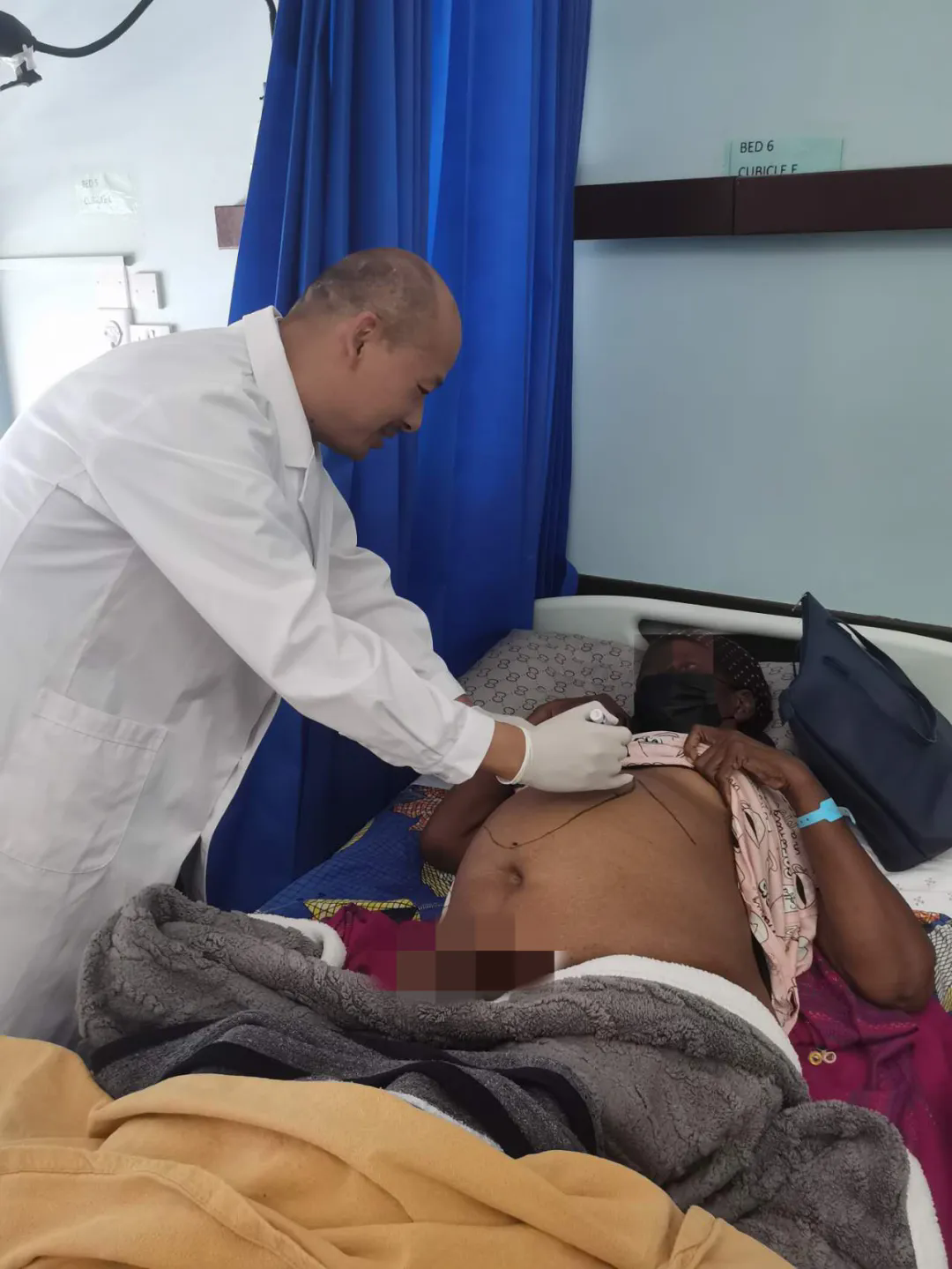 由于当地的医疗条件有限,此前类似复杂手术大多需要转诊到南非等国进行,不仅费用高昂,而且转诊手续繁琐,患者往往需要等待较长时间,面临癌变风险。尽管当地医疗设备简陋,但是望着老人及女儿焦急和期盼的眼神,张爱龙主任决定将病人收住院并手术。由于病情复杂,中国援博医疗队专家们迅速行动起来,他们详细研究患者的病情,并制定周密的手术方案。