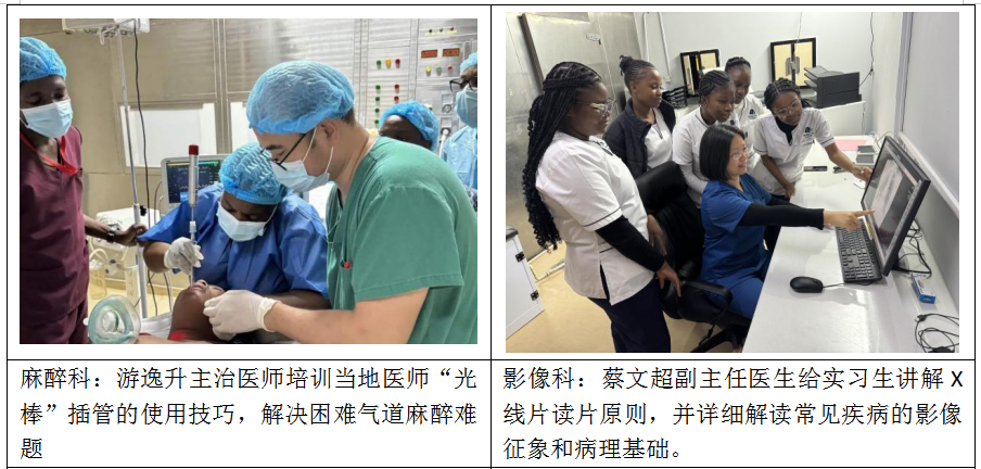 援博医疗队员以扎实的理论知识为当地医护人员传授技术,往往不是通过在多媒体教室上课,而是在病房、门诊诊室、手术室、检查室、阅片室等一个个“移动课堂”开展教学活动,帮助当地年轻医师和医学生们更好地将理论知识和临床实践紧密结合,提高临床实践能力和诊疗水平。无论是最基本的疾病规范化管理和病历书写、外科手术技巧,还是辅助检查结果的判读以及护理技能的培训,中国老师都在各自学科岗位上倾囊相授,努力在当地培养一支“带不走的医疗队”。过去一年,医疗队已培训当地医务人员超1000人次。