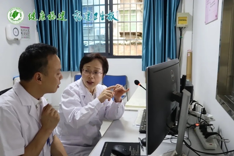 在三明市中西医结合医院妇科办公室,福建中医药大学附属人民医院李素敏主任医师正仔细翻阅一份疑难病例,分析道:“患者盆腔肿物,恶性肿瘤可能性大,已经做了腹腔穿刺,等待病理诊断结果,可以进一步完善相关检查,明确肿瘤临床分期,评估手术耐受情况,以及术中能否做到满意减瘤术,必要时先行新辅助化疗…。”围在桌旁的年轻医生们飞速记录,纸张上很快布满密密麻麻的笔记。他们纷纷表示:“这些实操经验,把我们的诊疗思路理清了。”