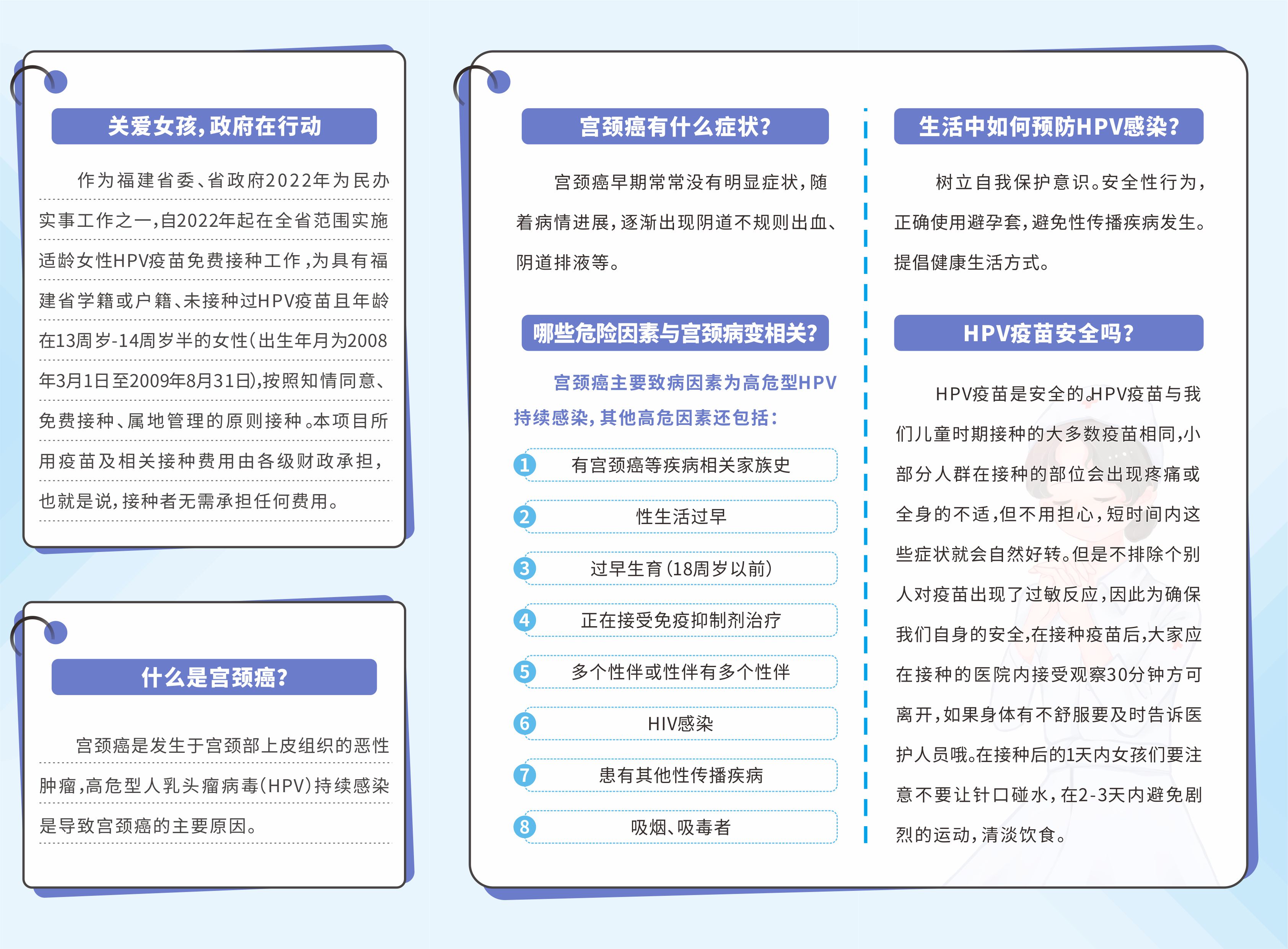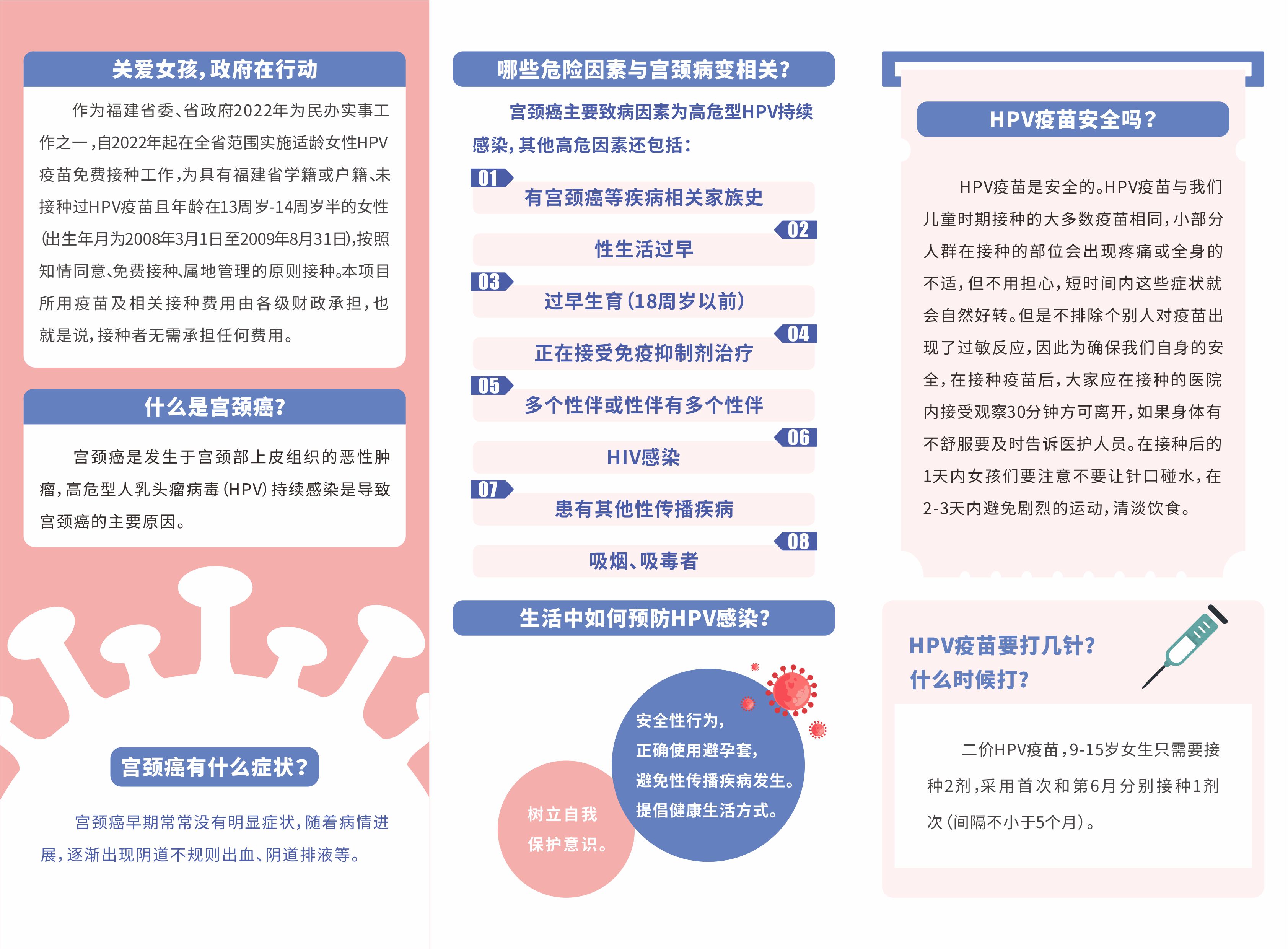 供福建省各地开展适龄女性人乳头瘤病毒(HPV)疫苗免费接种项目宣传使用。