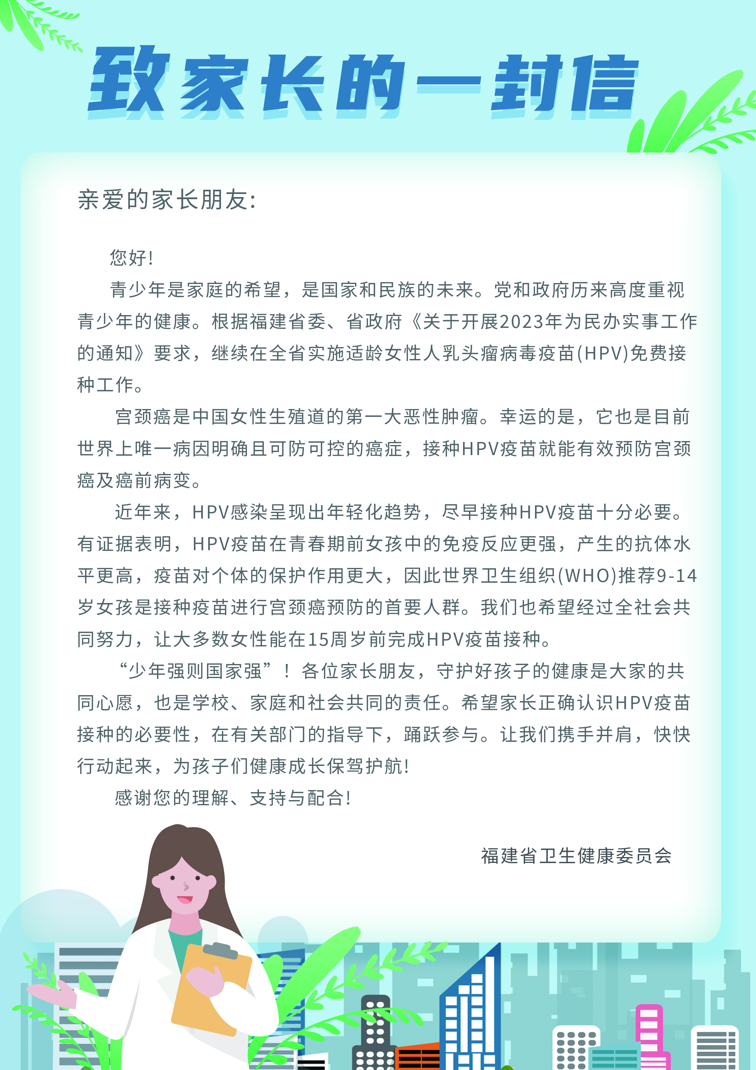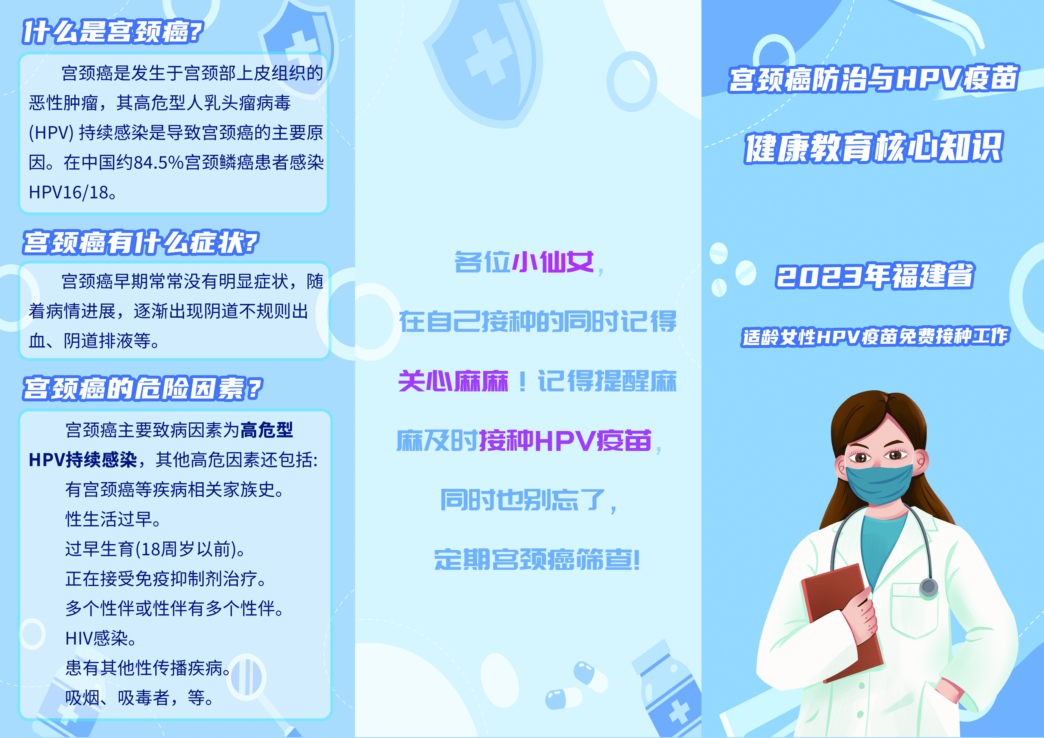 供全省各地开展2023年福建省适龄女性HPV疫苗免费接种项目宣传使用。