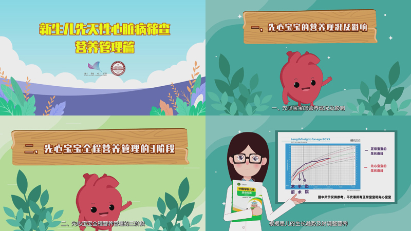下面就一起来看看《先心概论篇》、《先心筛查篇》、《先心诊断篇》、《先心治疗篇》、《先心救助篇》、《先心营养管理篇》这6集系列动漫短片吧。