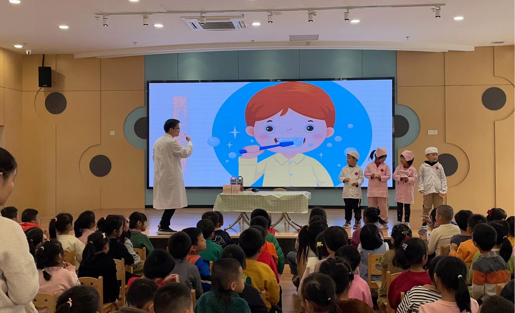 孩子们的健康也不马虎。通过“医校融合”,健康副园长(医务人员兼任)走进校园,协助学校做好健康监测,落实“六个一”服务,让健康守护伴随成长每一步。