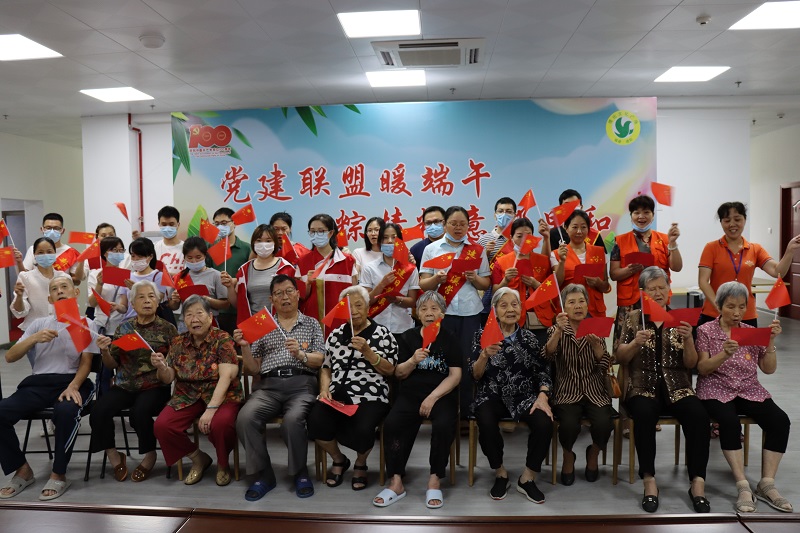 图:桥南社区组织共建单位与辖区老人开展“党建联盟暖端午 粽情粽意邻里和”活动