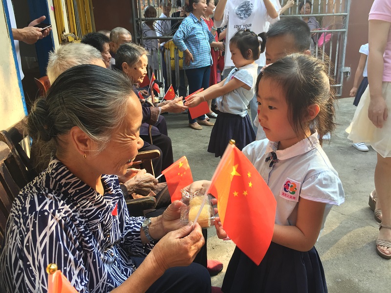 桥南社区组织学生给辖区老年人过重阳节