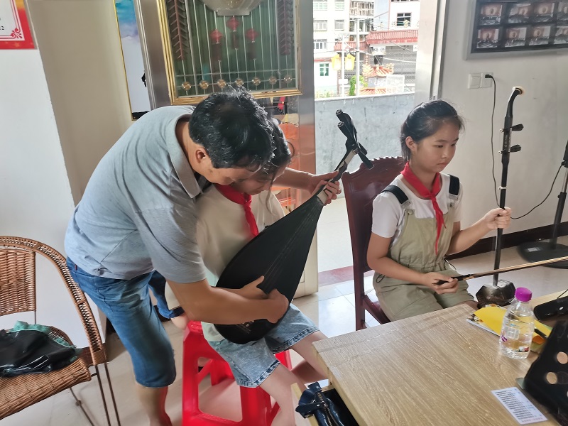 嵩溪村老年音乐爱好者志愿指导小学生南音演奏