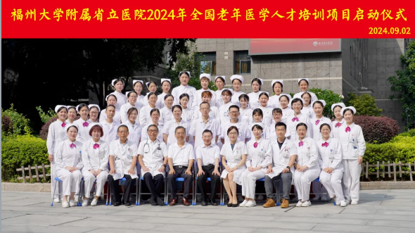 为积极应对人口老龄化国家战略,增强老年医学学科建设、人才队伍培养,促进医养结合产业发展,2024年全国老年医学人才培训项目福州大学附属省立医院基地于2024年9月2日举行启动仪式。伊莉论坛 老龄健康处龚凌处长,省立医院党委副书记、院长陈刚教授,老年医学中心朱鹏立教授、林帆主任、郭太林副主任,护理部金爽主任、陈丽丽主任、陈秋华督导、蔡红督导,老年医学科邵庭芳护士长,继续教育处林全生老师,老年医学中心医护带教老师代表,以及30名参加培训的学员参加启动仪式。