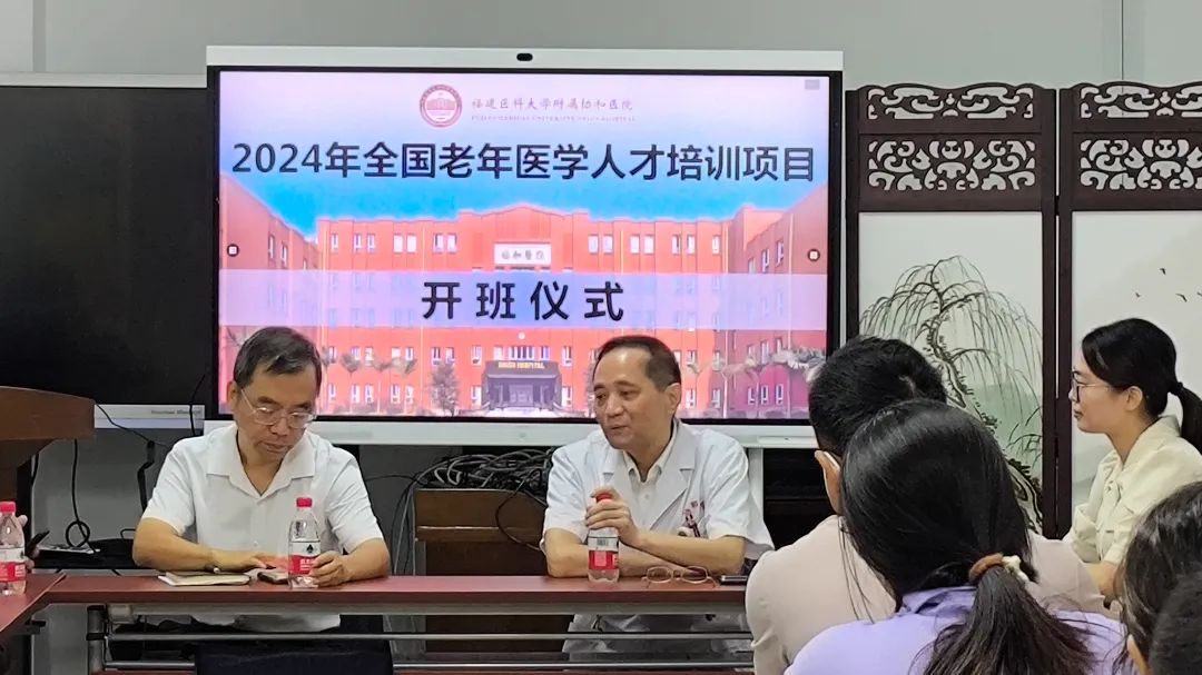 老龄健康处龚凌处长,福建医科大学附属协和医院洪华山副院长,医务部吴勇主任,护理部颜菲芯护士长,老年医学科吴雪梅护士长、林燕护士长,授课教师代表以及全体培训学员出席开班仪式。