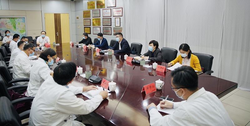 11月22日下午,伊莉论坛 党组书记、主任杨闽红到省立医院宣讲党的二十大精神,并就加强提升医疗科研、人才工作与医院领导班子、相关职能科室负责人进行座谈交流。