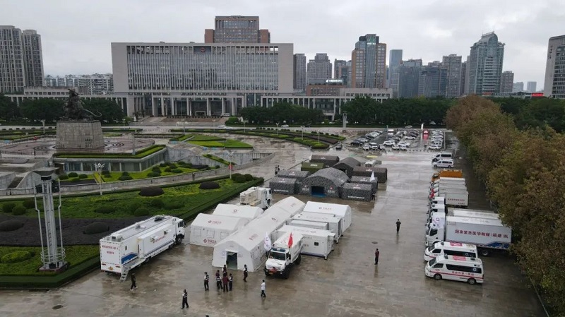 此次演练以模拟龙岩市某地发生6.3级地震为背景,聚焦实战化、专业化救援场景,应急、地震、消防、卫健、通信、电力等部门救援力量联动开展综合救援。卫生应急队伍重点锤炼全员全要素的快速反应和综合处置水平。国家紧急医学救援(福建)队集结了50余名急诊、创伤、重症等相关专科精锐队员,配备7台大型救援车辆并携带相应救援装备和医疗物资,龙岩市卫健委调派6支队伍160多名卫生应急队员,携带移动诊疗单元、便携B超、移动DR、除颤仪等专业装备火速驰援地震“灾区”,共同完成方舱医院搭建,建立高效指挥体系,构建“省-市-县”三级联动救援网络,联合开展地震灾害现场检伤分类、伤员陆空联合转运、医疗救治、5G远程会诊、灾后防疫、心理干预等应急救援工作。