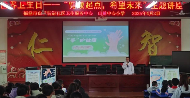 ▲4月2日,福鼎市山前街道卫生服务中心走进山前中心小学,为233名学生开展手卫生专题讲座。