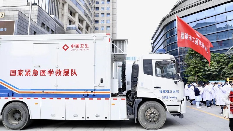 首场巡诊的“移动医院”包括省立医院国家紧急医学救援队的门诊车、医技保障车、移动CT车、物资运输车、发电储油车,福建医科大学附属第一医院的移动CT车,以及福建医科大学附属口腔医院的口腔诊疗车,可谓阵容强大,装备精良。