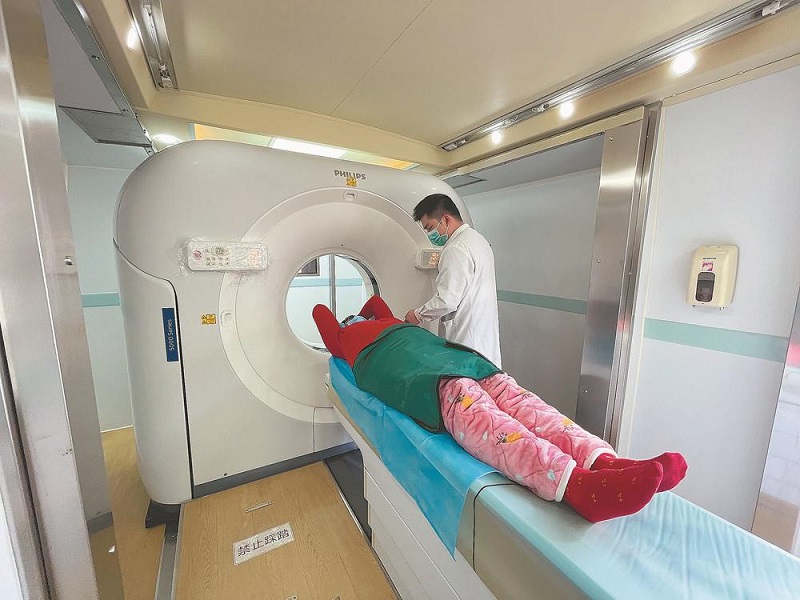 患者在移动CT车内进行检查。