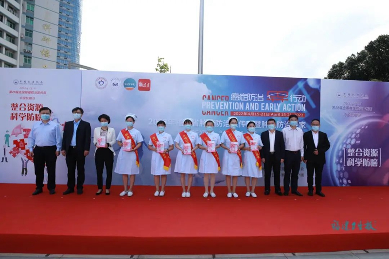 4月15日上午,2022年福建省肿瘤防治宣传周暨肿瘤防治专家入驻新福建“健康大使”项目启动仪式在福建省肿瘤医院举行。