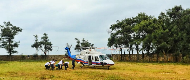 ▲国家紧急医学救援(福建)队开展航空救援演练