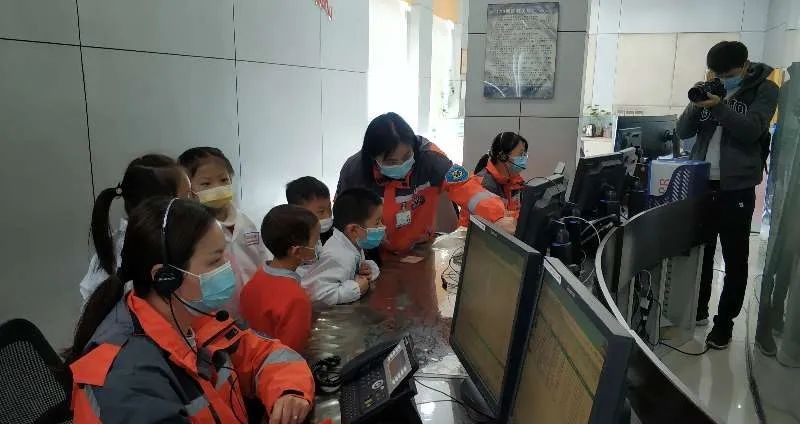 ▲“小急救员”参观120调度中心,明白抢救生命一刻也耽误不得