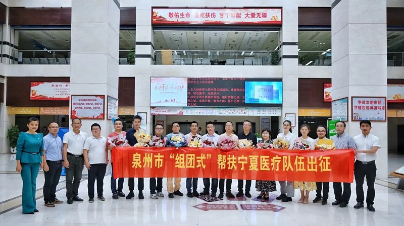 泉州市切实做好2022年“组团式”帮扶国家乡村振兴重点帮扶县县医院工作,泉州市第一医院选派心血管内科、神经外科、妇产科、重症医学科、影像科、新生儿科共6名专家对口帮扶同心县人民医院;晋江市安海医院、惠安县医院共同选派妇产科、儿科、泌尿外科、神经内科、呼吸内科共5名专家对口帮扶红寺堡区人民医院,以医疗帮扶做闽宁纽带,再结山海深情,共促双方医疗技术水平的提升。