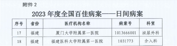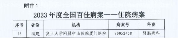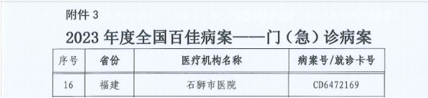 近日,国家卫生健康委公布2023年度全国“百佳病案”评选结果。经过国家初评和终评两个轮次,我省推选的4份优秀病案成功入选2023年度全国“百佳病案”。分别是复旦大学附属中山医院厦门医院肾脏病科的住院病案,厦门大学附属第一医院泌尿外科、福建医科大学附属第一医院介入科的日间病案,石狮市医院的门(急)诊病案。规范病历书写是加强医疗质量管理、培养和提升医务人员诊疗能力的重要抓手,对提高医院管理科学化、精细化水平具有重要意义。“百佳病案”评选活动系国家卫生健康委《全面提升医疗质量行动计划(2023-2025年)》专项行动“病历内涵质量提升行动”系列活动之一,旨在通过此活动促进医疗机构提升病历内涵质量,充分发挥优秀病案的示范作用,进一步提升医疗服务水平。我省多份病案入围,充分展现了我省临床医务人员扎实的临床诊疗能力和规范的病案书写能力。