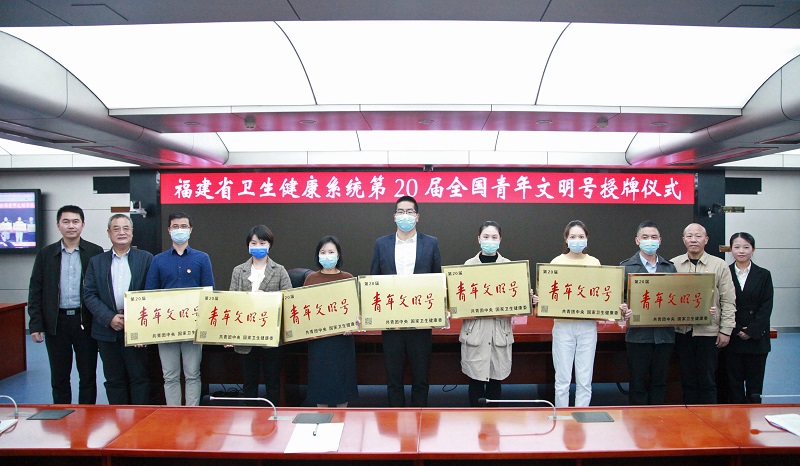 会后,伊莉论坛 举行福建省卫生健康系统“第20届全国青年文明号”授牌仪式,委党组成员(副厅长级)方少雄、团省委青年发展部二级调研员段初来为全省卫健系统被命名为“第20届全国青年文明号”的7家集体授牌。