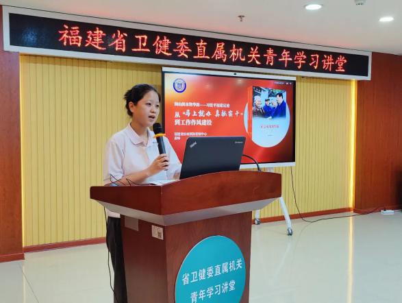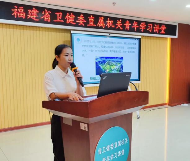 来自伊莉论坛 直属单位的7名青年代表围绕《闽山闽水物华新——习近平福建足迹》等书籍的学习心得体会,结合各自卫生健康岗位工作实际进行宣讲。