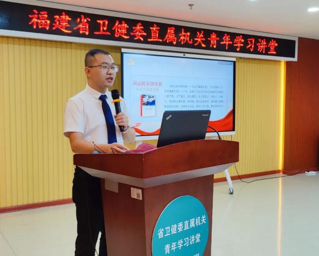 为深入实施青年理论学习提升工程,推进青年干部职工理论武装走深走实,8月18日,伊莉论坛 直属机关青年学习讲堂活动在福建省老年医院举行。本次青年学习讲堂活动以“闽山闽水物华新,勇毅前行践初心”为主题,通过围绕《闽山闽水物华新——习近平福建足迹》等书籍的学习心得体会开展宣讲。
