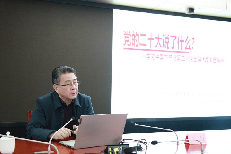 石磊同志的讲座以“党的二十大说了什么”为主题,从“新征程团结奋斗的起点平台、思想基础、战略安排、以及团结奋斗实现目标的保障”等四个方面对党的二十大精神进行深入阐释。