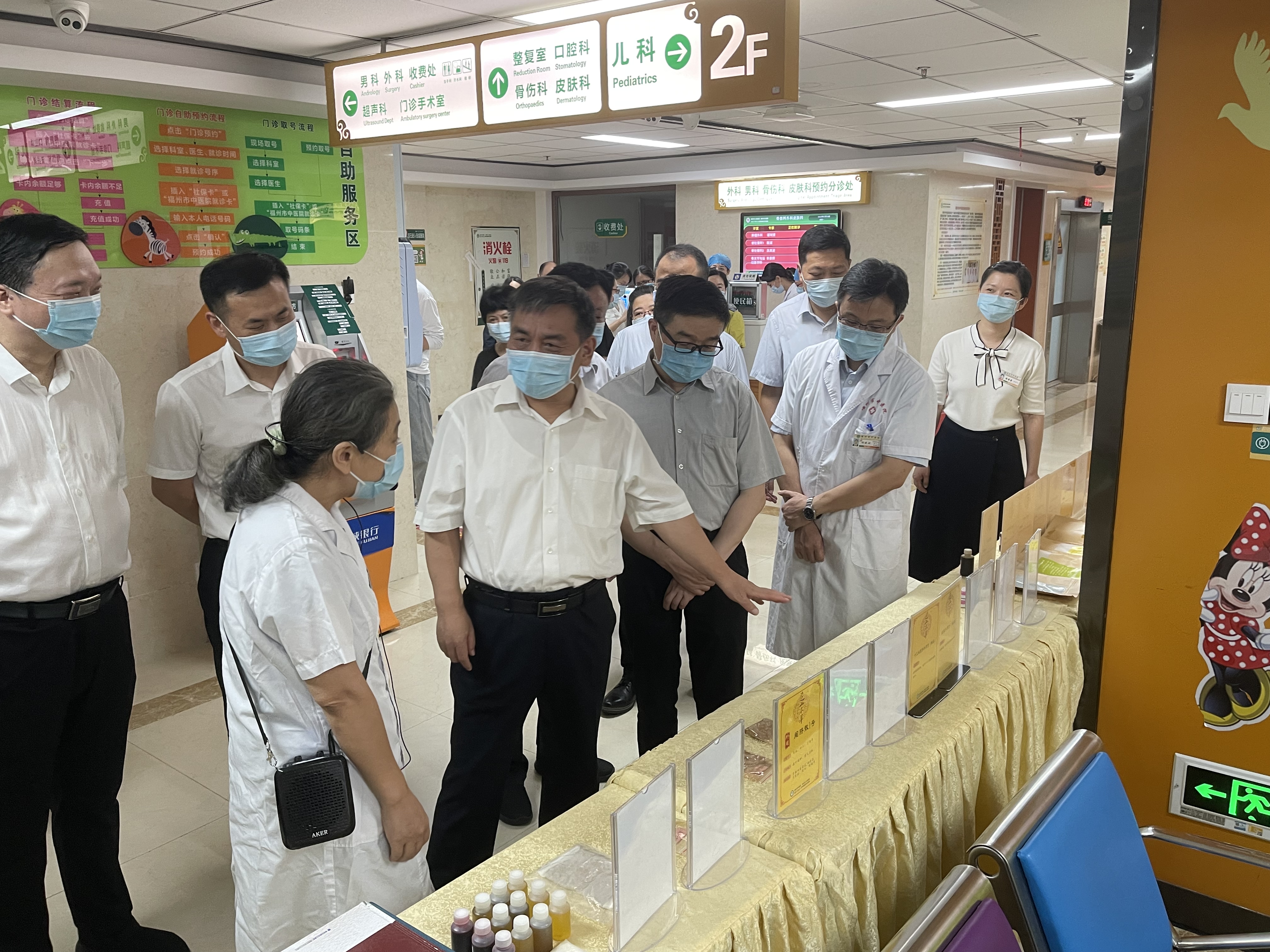 在福州市中医院,调研组一行听取关于医院历史及“一院两区”发展战略的介绍,了解了“三码融合”试点工作、中药膏方及中药外治产品、中医药文化建设以及儿科、眼科、针灸科、皮肤科等情况。