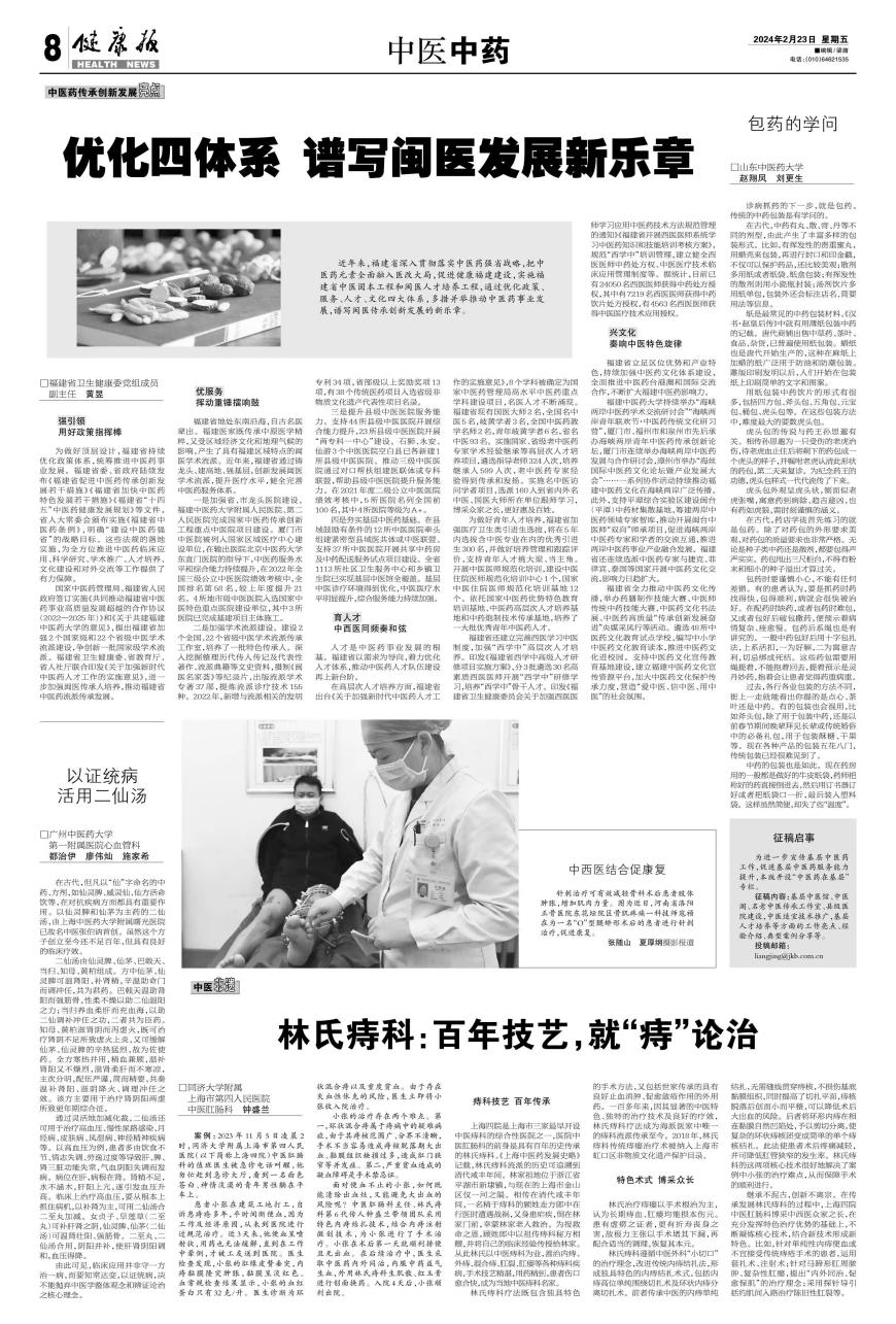 近年来,福建省深入贯彻落实中医药强省战略,把中医药元素全面融入医改大局,促进健康福建建设,实施福建省中医固本工程和闽医人才培养工程,通过优化政策、服务、人才、文化四大体系,多措并举推动中医药事业发展,谱写闽医传承创新发展的新乐章。
