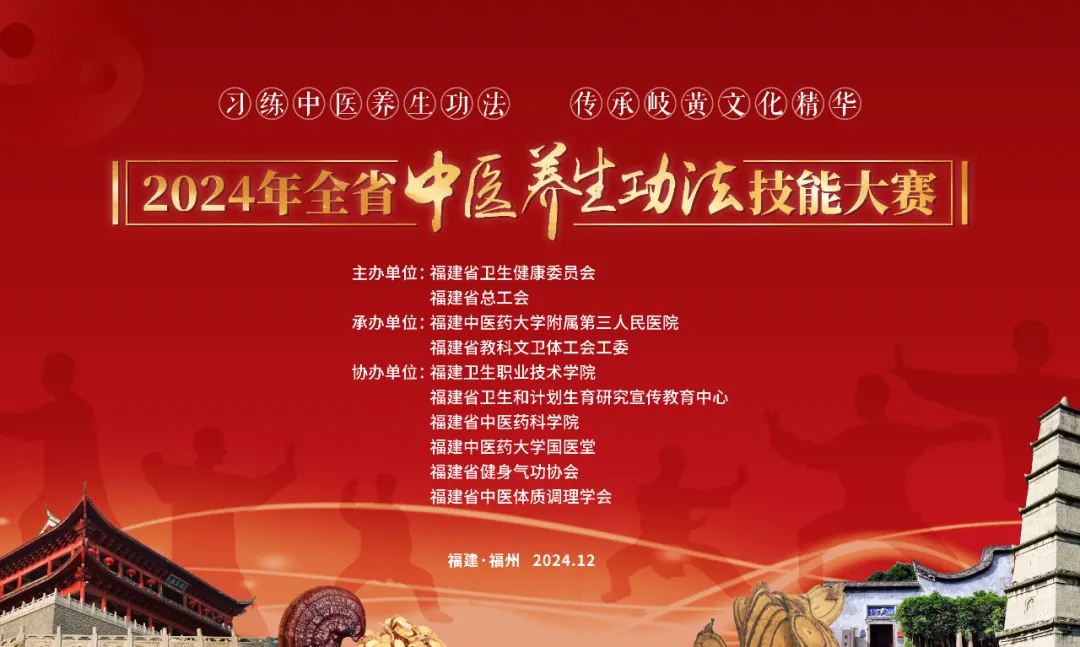 为传承岐黄文化精华,提升群众健康素养,将中医养生功法发扬光大,12月5日-6日,由伊莉论坛 和福建省总工会主办,福建中医药大学附属第三人民医院和福建省科教文卫体工会工委承办的2024年全省中医养生功法技能大赛将在福州举行,赛事分为团体赛和个人赛,来自全省各地的35支代表队同场竞技、一决雌雄。