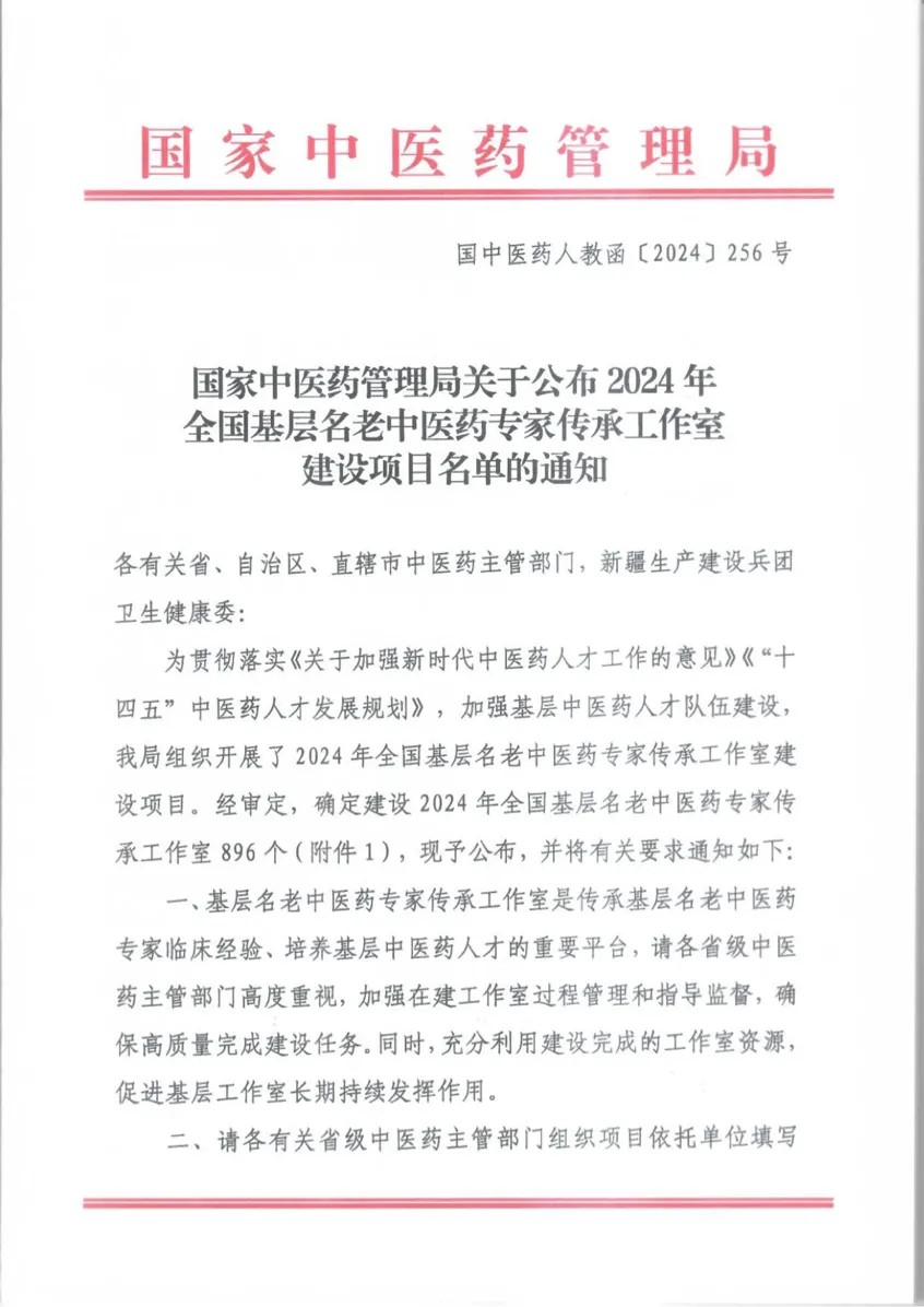 近日,国家中医药管理局公布2024年全国基层名老中医药专家传承工作室建设项目名单,共896个。我省共有38个工作室入选。