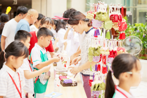 在福建省泉州市活动现场,小朋友们在制作香囊。