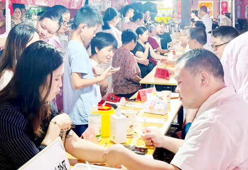 中医药特色体验区颇为“吸粉”。中药猜谜游戏让传统文化在趣味中传承。药师们穿着古装,冲泡养生中药奶茶,供群众免费品尝,还不时介绍展架上的饮片和药膳,让群众零距离了解中医药。三伏贴集中贴敷区,耳豆埋穴、火龙灸、葫芦灸等特色疗法体验区,无不排起长龙。沉浸式体验让中医药文化从古籍中走出,在现代生活中焕发新生。