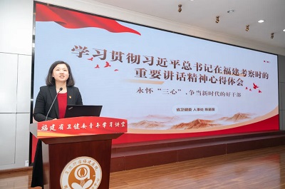 一要牢记嘱托,深学笃行。要深刻感悟习近平总书记的深情大爱,始终怀着特殊的感情,不断增强学习贯彻的主动性、自觉性、坚定性,把学习贯彻习近平总书记在福建考察时的重要讲话精神,与习近平总书记关于健康中国和青年工作的重要论述紧密结合起来,牢记于心、付诸于行,切实把学习贯彻习近平总书记重要讲话精神贯穿卫生健康工作全过程各方面。