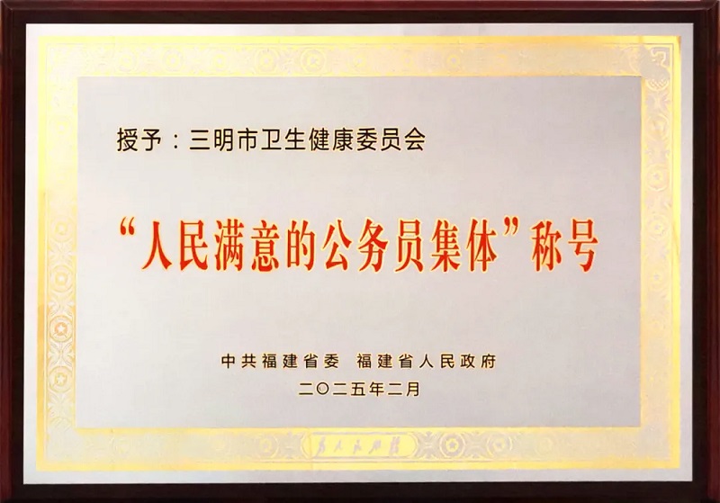 近日,福建省委、福建省人民政府发布关于表彰第五届福建省“人民满意的公务员”和“人民满意的公务员集体”的决定,三明市卫生健康委员会荣获第五届福建省“人民满意的公务员集体”称号。