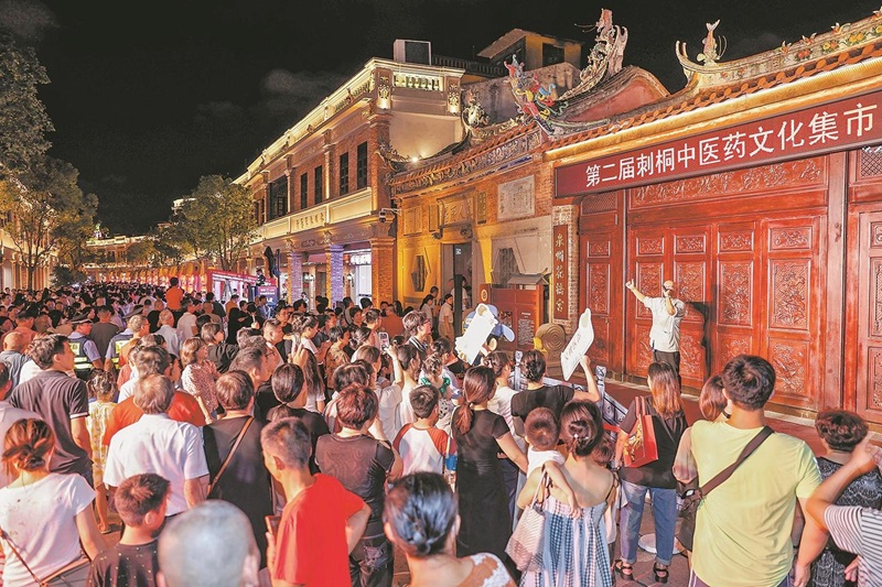 今年国庆期间,泉州中山南路开市,吸引大量市民游客涌入,现场的刺桐中医药文化集市人潮汹涌。 (融媒体记者陈起拓 摄)