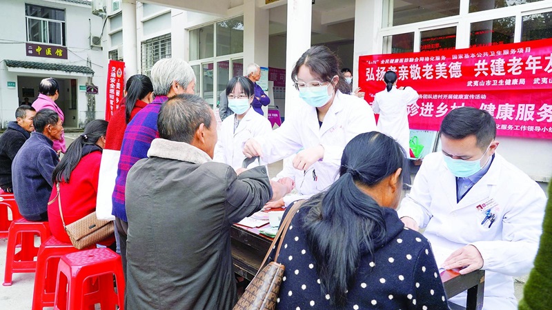 武夷山公立总医院深入岚谷乡卫生院,开展流动医院巡诊下乡活动,为老年人送去健康关怀与节日温暖。 (武夷山公立总医院 供图)