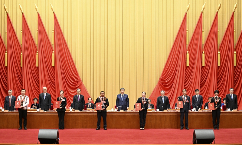 9月27日,全国民族团结进步表彰大会在北京举行。中共中央总书记、国家主席、中央军委主席习近平出席大会并发表重要讲话。新华社记者 谢环驰 摄