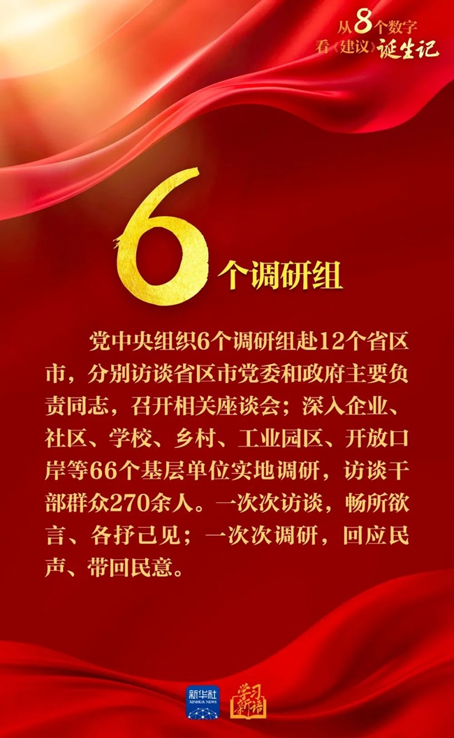 近日,新华社播发通讯《为基本实现社会主义现代化奠定更加坚实的基础——<中共中央关于制定国民经济和社会发展第十五个五年规划的建议>诞生记》。通过一组数字,一起来看这份纲领性文件是如何诞生的。