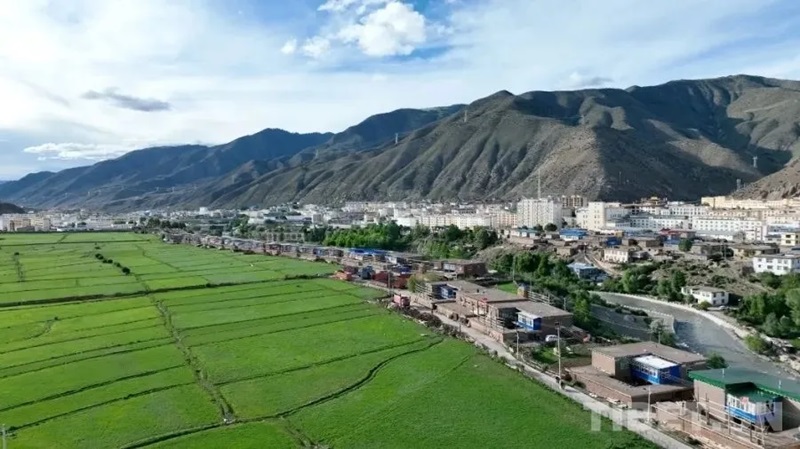 图为洛隆县县城的航拍景观