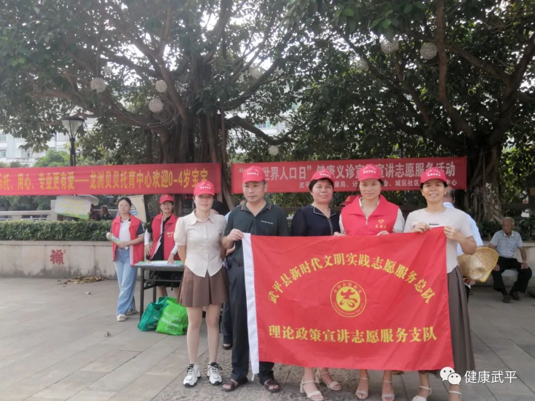 2023年7月11日是第34个“世界人口日”,武平县卫健局联合县计生协会、城区社区卫生服务中心、龙洲贝贝托育园,深入梁野文化广场开展“7.11世界人口日”健康义诊宣传宣讲志愿服务活动。
