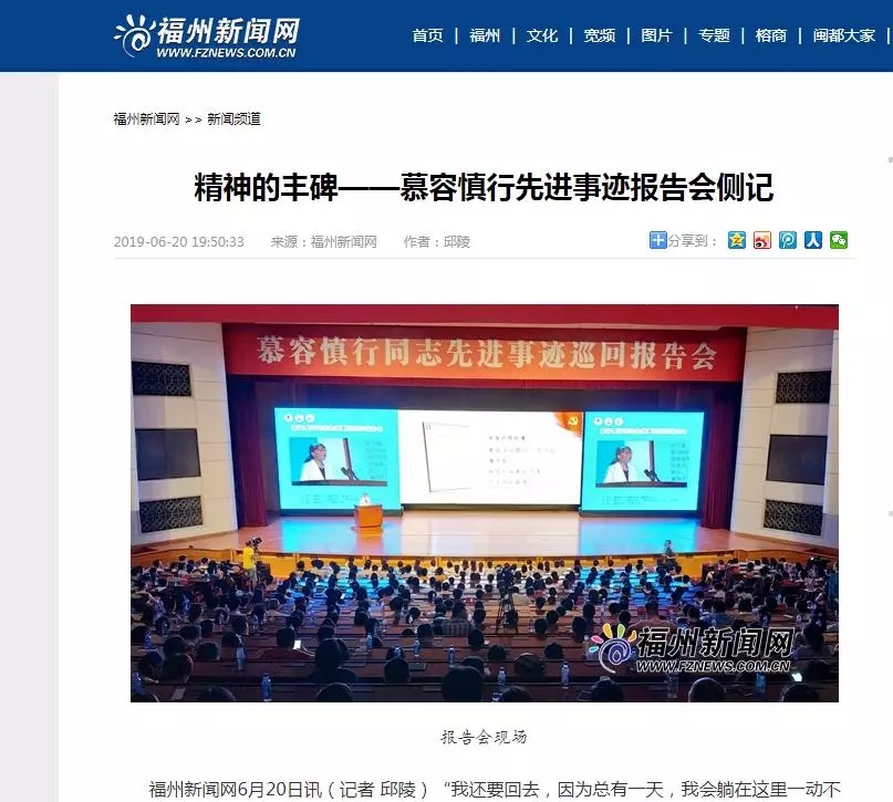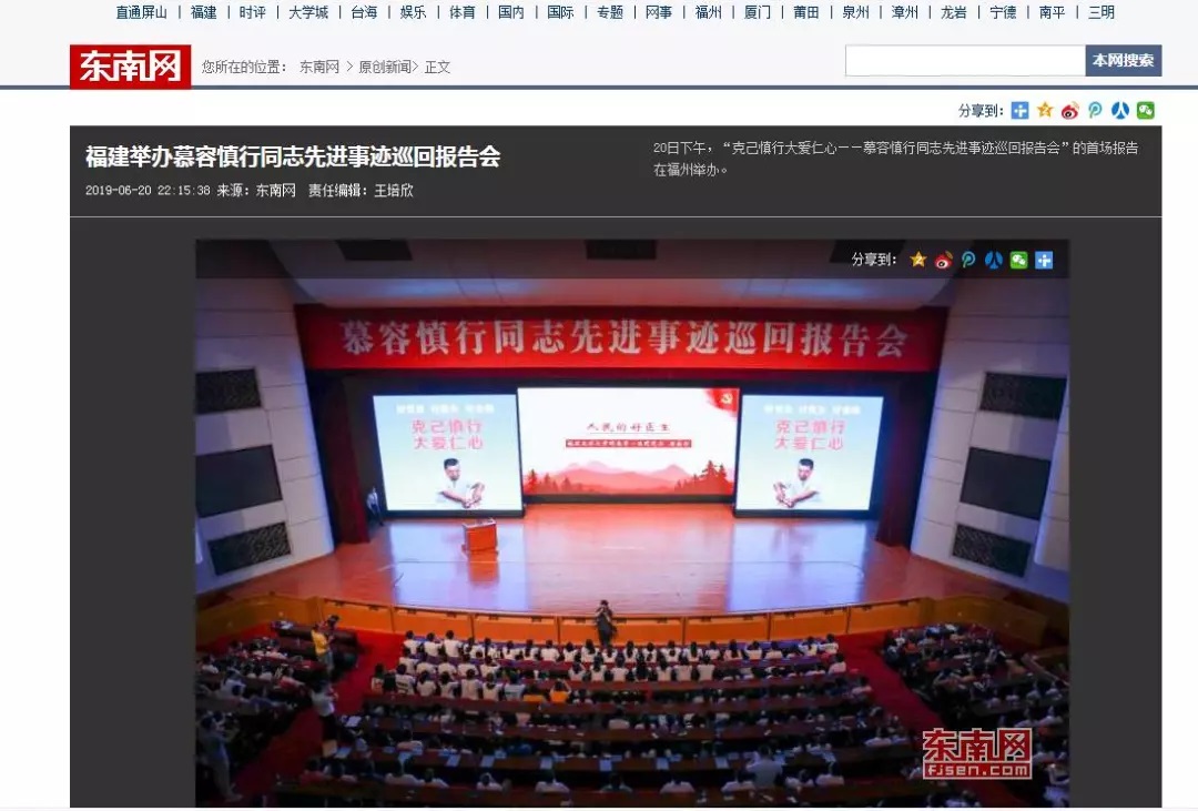 6月20日下午,“克己慎行 大爱仁心——慕容慎行同志先进事迹巡回报告会”首场报告会在福建会堂举,引起强烈反响!