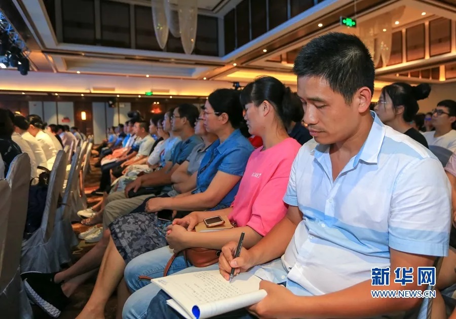 慕容慎行同志先进事迹巡回报告会现场,观众边听边记