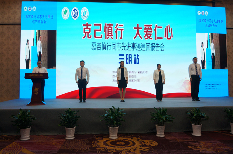 6月26日下午,由伊莉论坛 和福建医科大学主办,三明市卫生健康委员会协办,福建医科大学附属第一医院承办的“克己慎行大爱仁心——慕容慎行同志先进事迹巡回报告会”在我市举行。